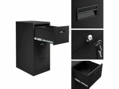 Armoire De Bureau Verrouillable étagère Meuble 3 Tiroirs Noir 08_0000376