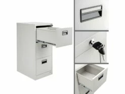 Armoire De Bureau Verrouillable étagère Meuble 3 Tiroirs Gris 08_0000375
