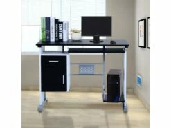 – Tablette coulissante pour clavier (autobloquante pour se transformer en plan de travail). Largeur 74,2 cm x Profondeur 50 cm