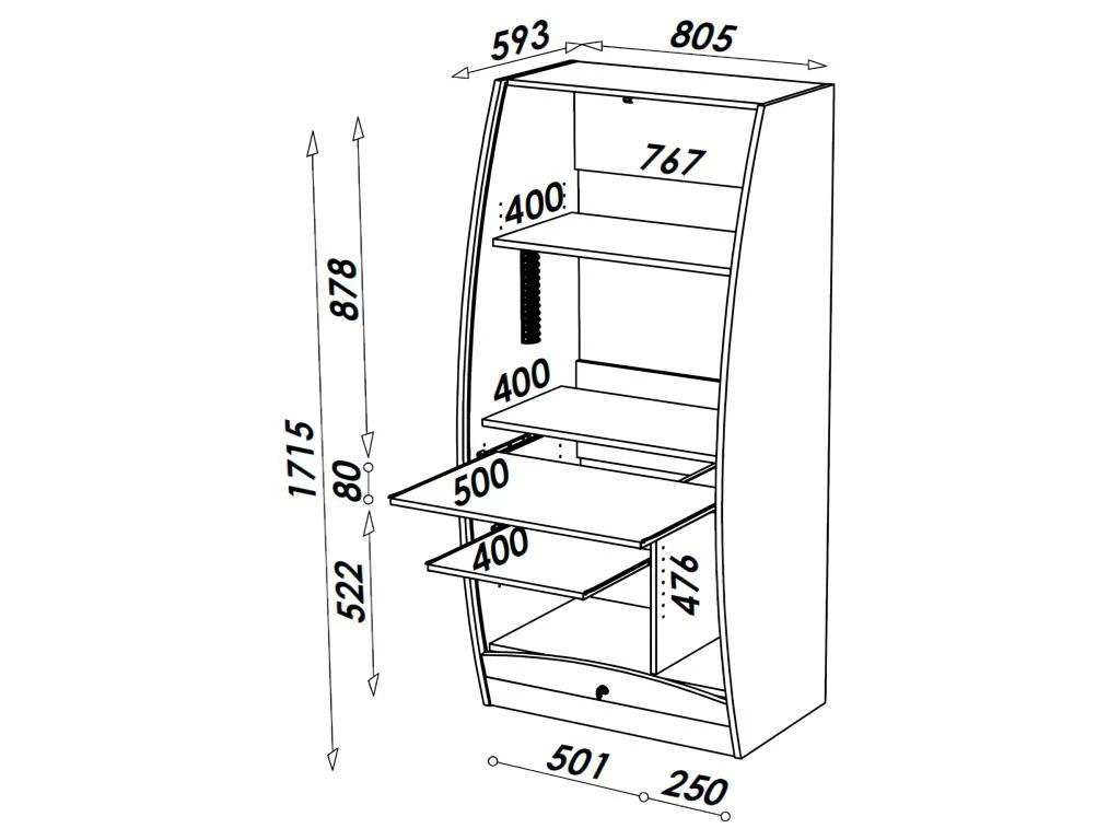 Armoire Informatique Galbée 80 Cm Chêne 6 Niches