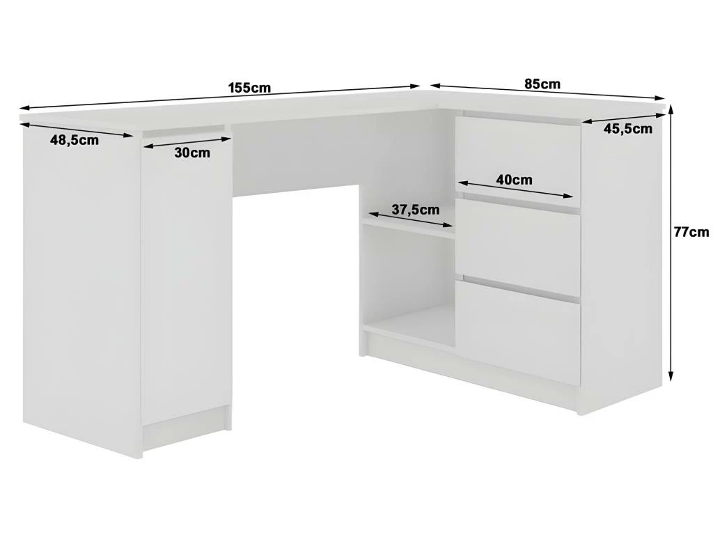Bureau COLETTE Rangement Avec 5 Tiroirs Et Plateau Avec Corniche, En Pin Massif Lasuré Blanc