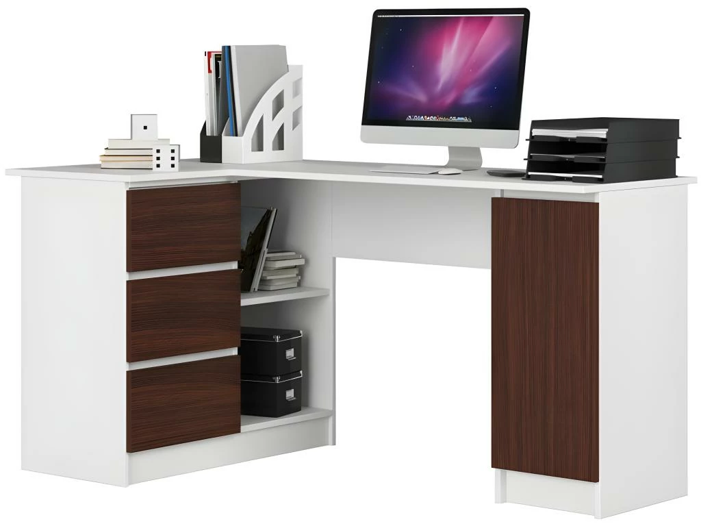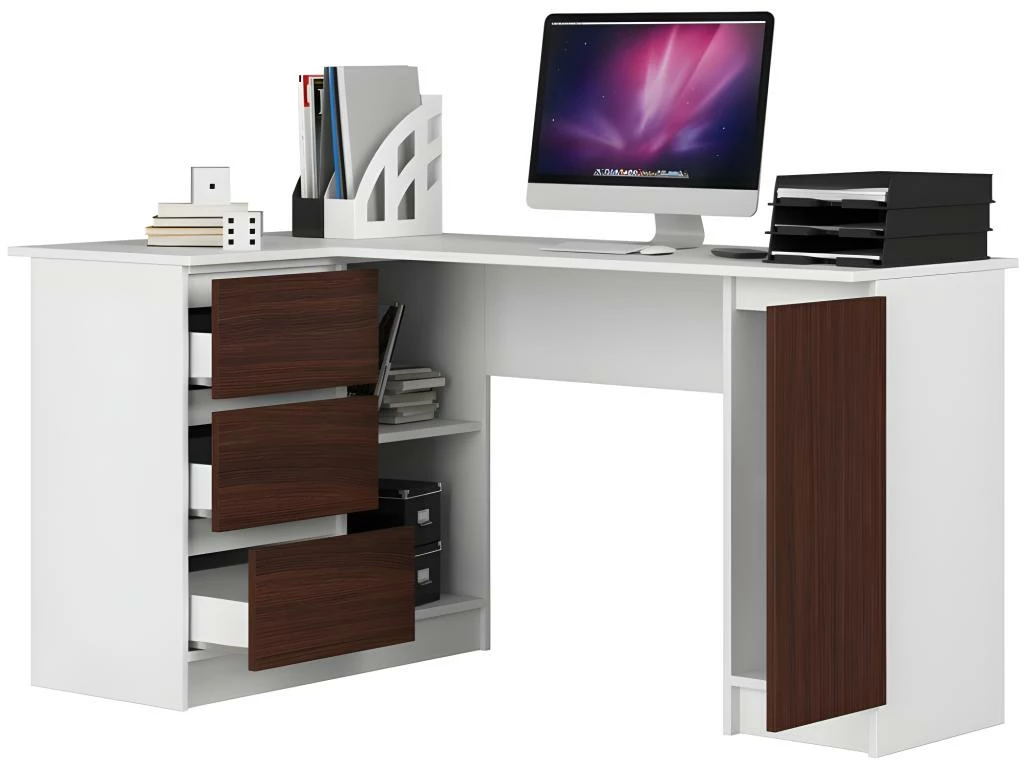 Bureau COLETTE Rangement Avec 5 Tiroirs Et Plateau Avec Corniche, En Pin Massif Lasuré Blanc