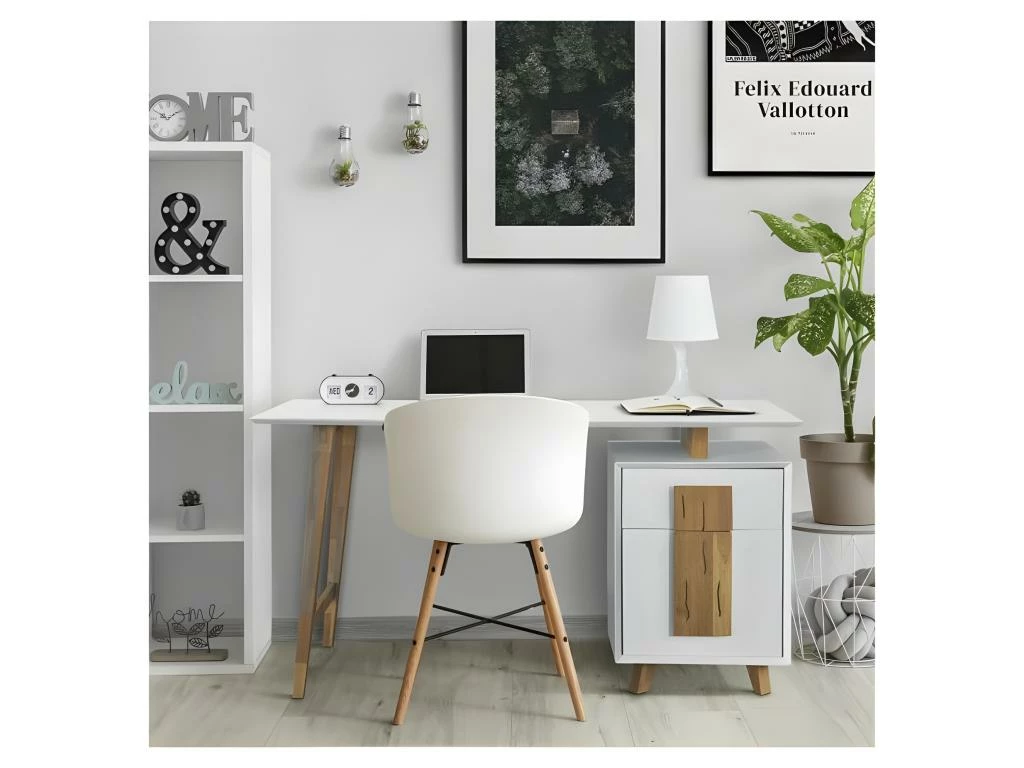 Bureau Avec 3 Tiroirs – MDF Laqué Et Métal – Blanc Et Doré – TIMFIA De Pascal Morabito