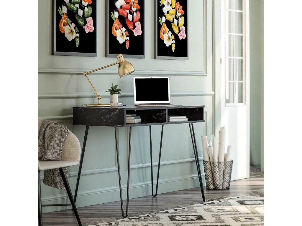 Fabriqué en panneaux de particules stratifiés en PVC, ce bureau léger et facile à nettoyer est doté d’un bureau en faux marbre et de pieds en épingle à cheveux en métal peint par poudrage pour un ajout tendance à votre espace.