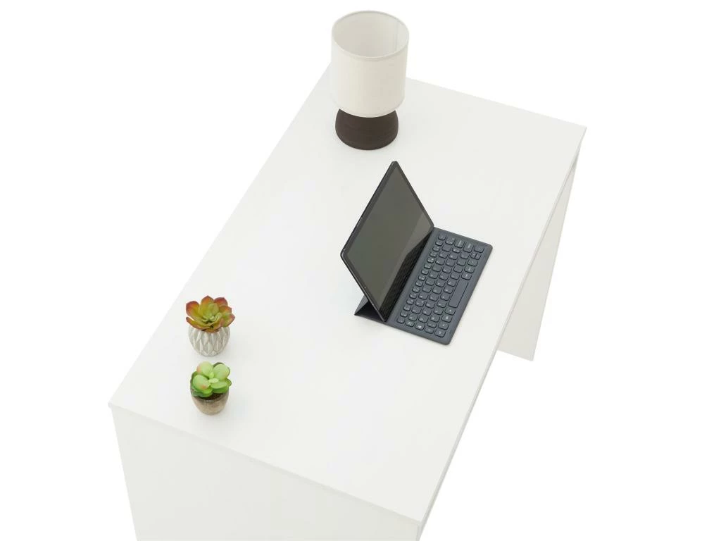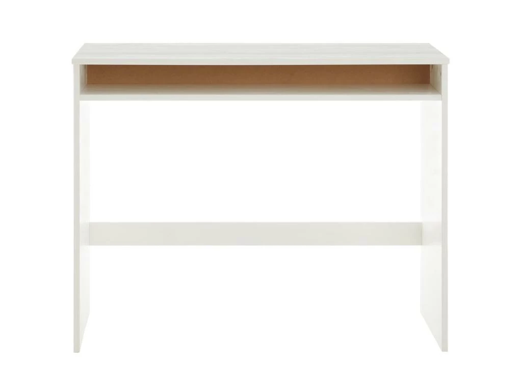– Le bureau est fabriqué en pin massif et recouvert d’une lasure de couleur blanc.
