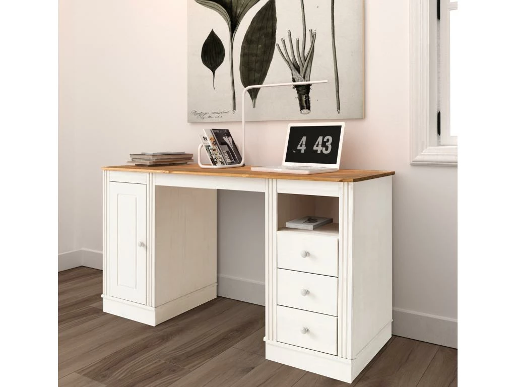 ALIDA – Bureau Marron 1 Niche Et 1 Tablette Teck Recyclé Acacia Mahogany Recyclé Et Métal Noir