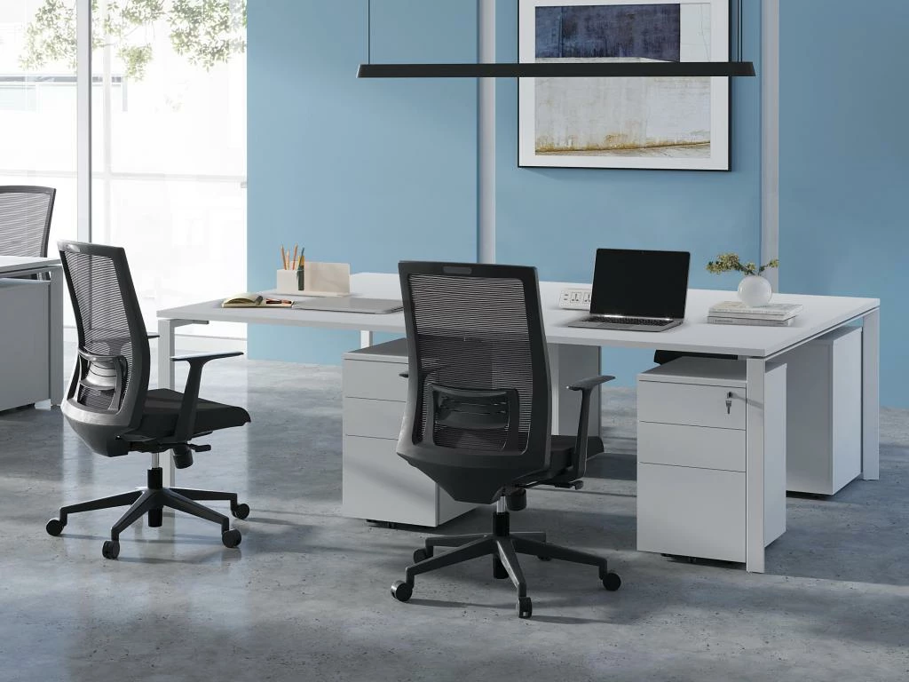 Avec son piétement en acier et son plateau en panneau de particules mélaminé, ces bureaux vous apporteront toute la robustesse dont vous avez besoin pour apposer l’intégralité de votre équipement : ordinateur, écran, téléphone, classeurs et petits accessoires. Choisir DOWNTOWN c’est donc faire le choix d’un mobilier durable.