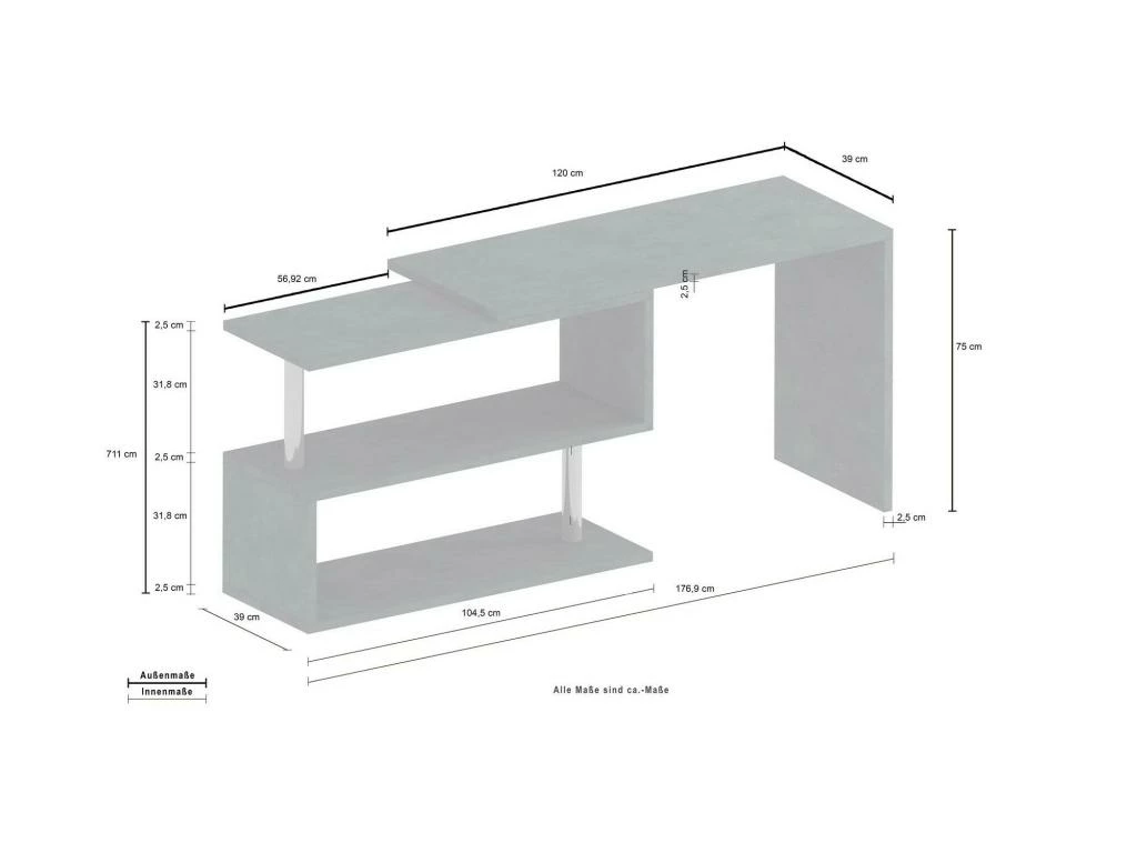DIMENSIONS EN CM – Bureau : Longueur : 120 Largeur : 50 Hauteur : 75