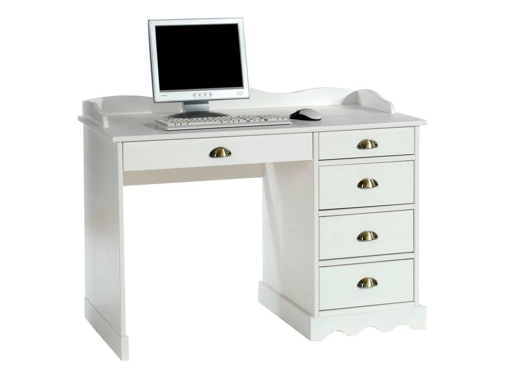 … avec son style classique est idéal pour meubler de manière élégante votre bureau. Doté de 5 tiroirs, 1 grand au centre et 4 plus petits sur le côté, il vous permettra d’organiser votre travail de façon optimale et de ranger toutes vos affaires personnelles. La corniche et les poignées en forme de coquille apportent une touche de charme supplémentaire à ce bureau et soulignent son style maison de campagne.