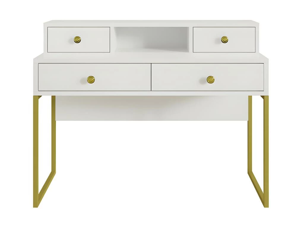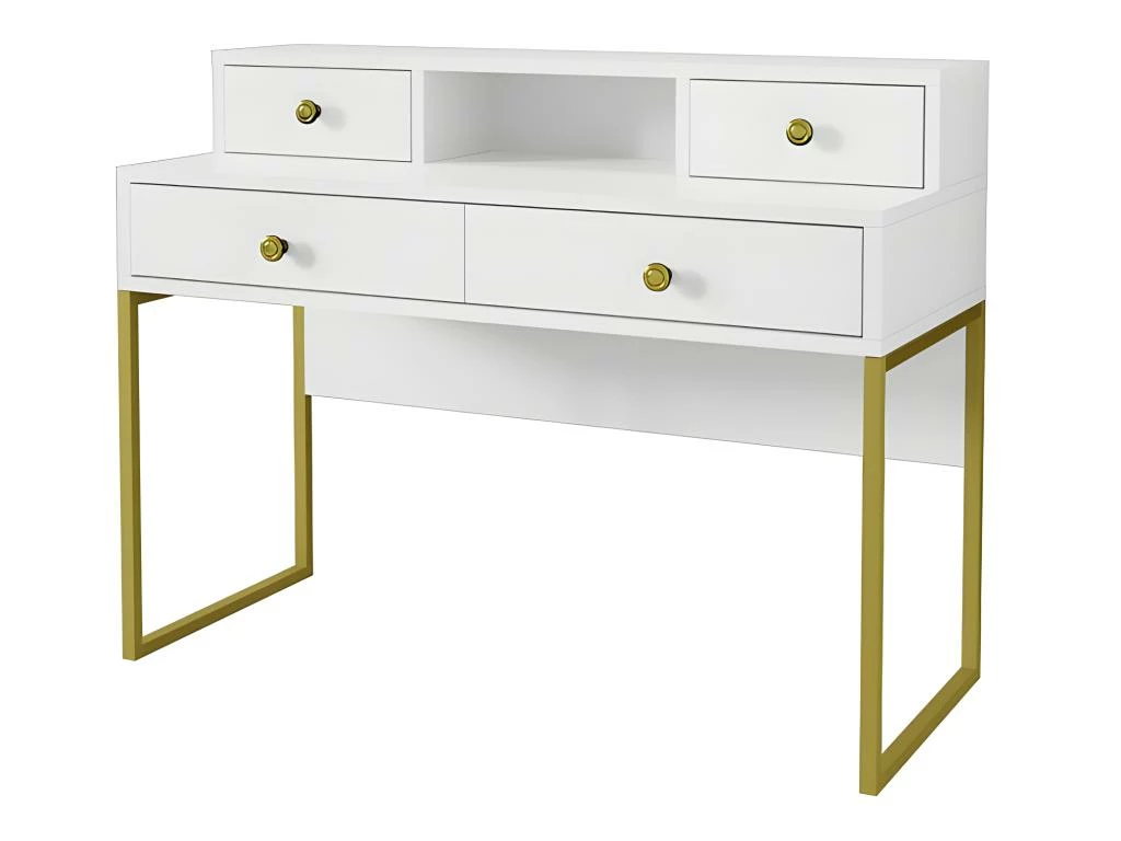 – COLORIS : Structure et poignées tiroirs en métal doré, meuble couleur blanche.