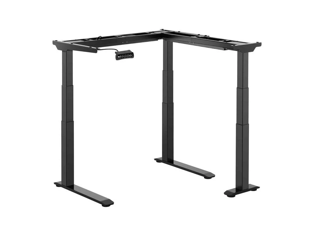 Le piètement pour bureau d’angle réglable en hauteur permet de travailler en position assise et debout.