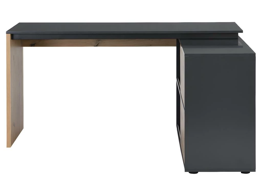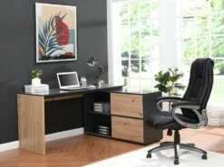 Bureau D’angle Avec 2 Porte Coulissantes – MDF – Coloris : Naturel Et Noir – COLIOBA