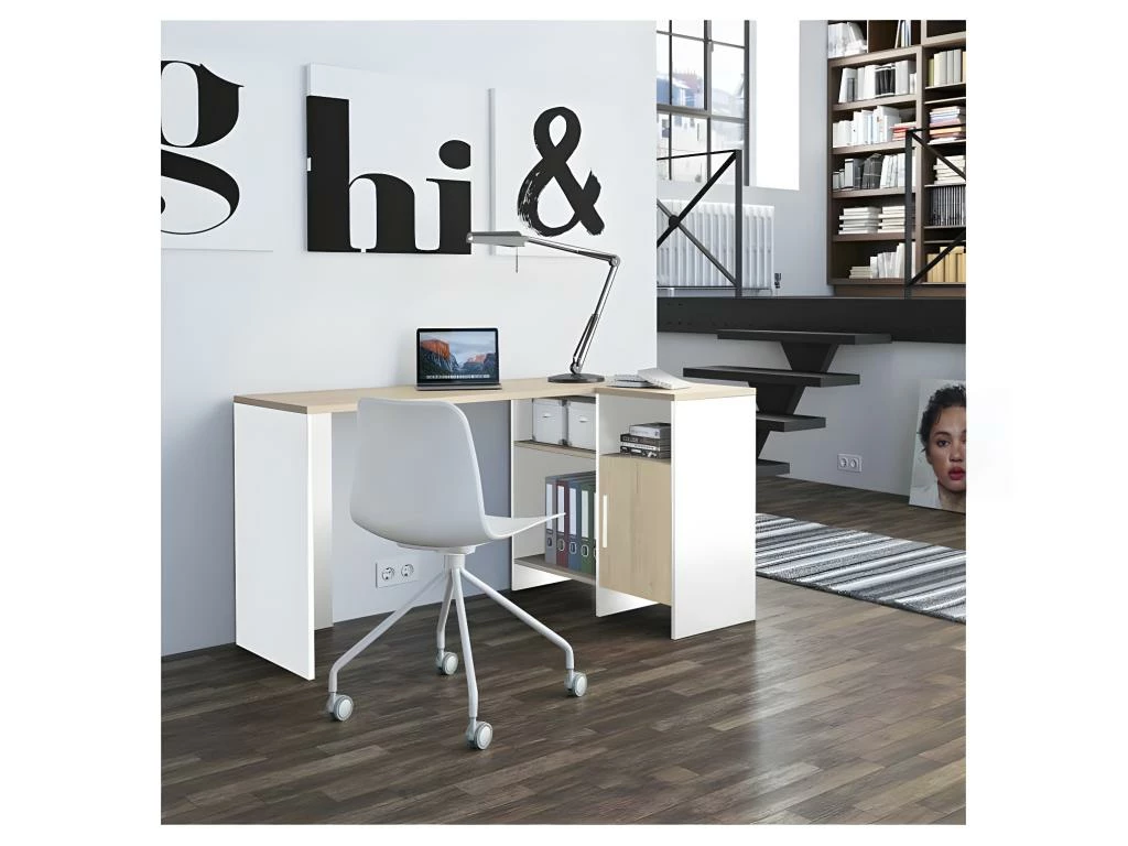Aménagez un espace de travail confortable et esthétique avec ce bureau d’angle au code couleur contemporain.