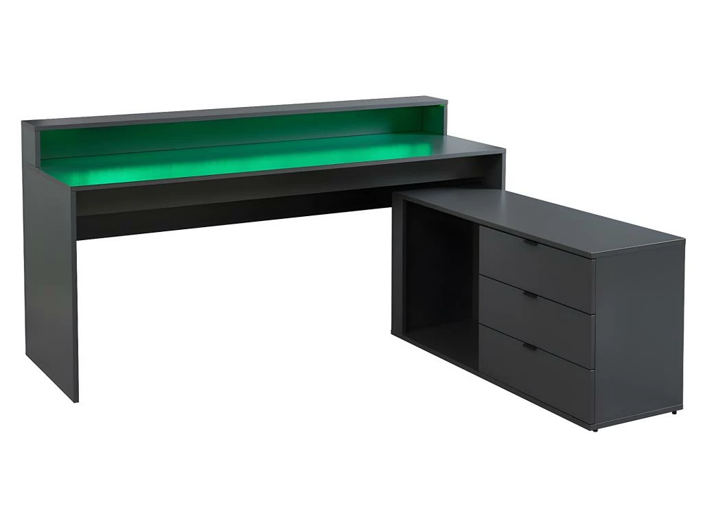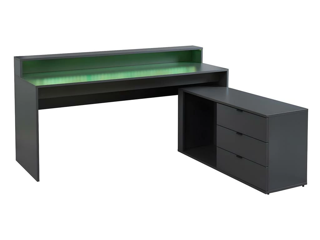 Avec son design conçu pour vous apporter tout le confort nécessaire, le bureau d’angle NEHA dispose de rangements très pratiques. Vous pourrez y disposer une configuration avec 2 voire 3 écrans, votre clavier, votre souris et tous vos périphériques externes. Il dispose également de LEDs de plusieurs couleurs qui illumineront votre intérieur !