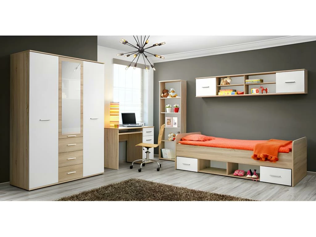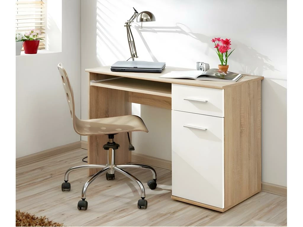 Bureau pour enfant ou adolescent collection DENVER. Ce bureau est composé d’un tiroir, d’une porte et d’une étagère coulissante.