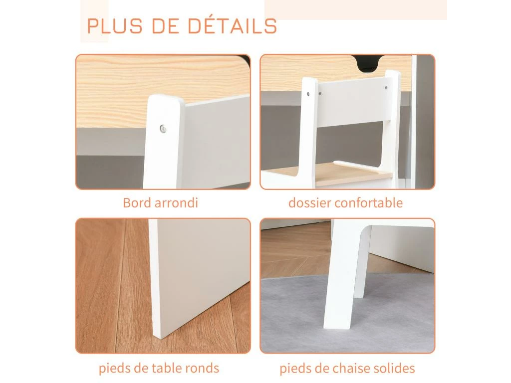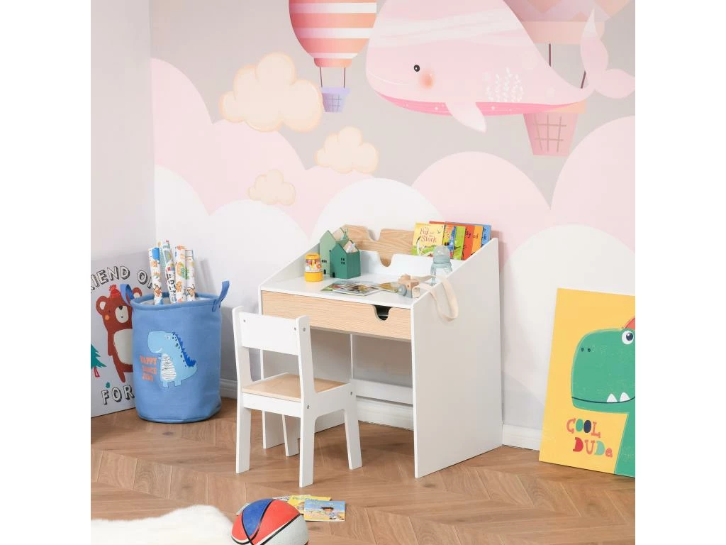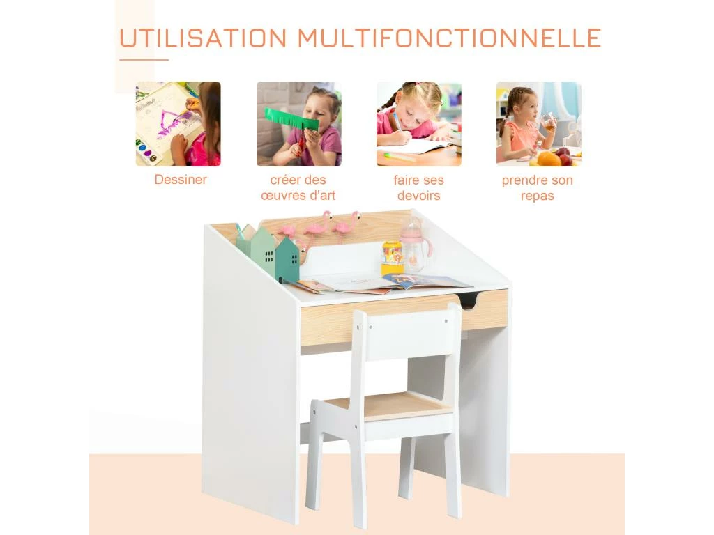 Bureau Enfant Style Scandinave – Ensemble Bureau Et Chaise – Tiroir Coulissant, Présentoir Livres – MDF Blanc Aspect Bois De Pin