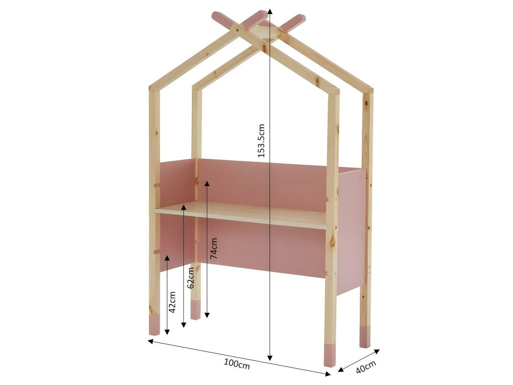 Bureau évolutif enfant en forme de tipi TINY – Structure en MDF et bois massif de pin – Revêtement mélaminé rose – Dimensions : L100 x P40 x H153,5cm
