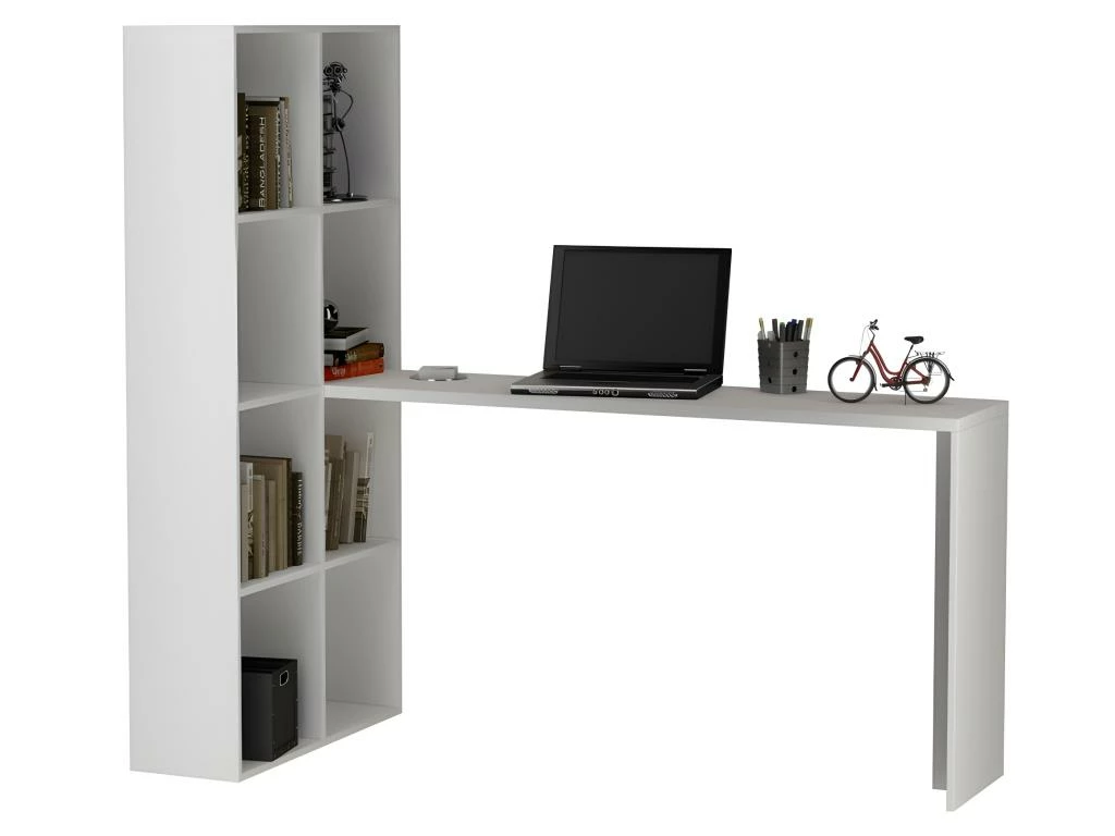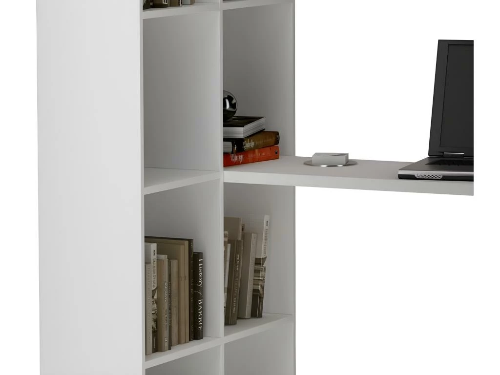 Meuble de Bureau avec Armoire Intégrée 8 Niches Coloris Blanc.