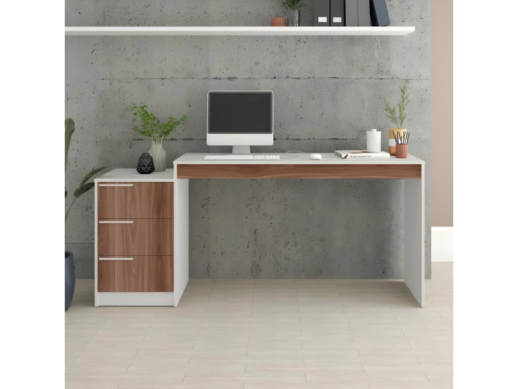 Bureau et Caisson 3 Tiroirs Amovible Blanc et Imitation Châtaignier OFFICE