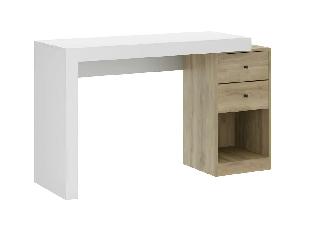 Fonctionnel et moderne, le bureau EVAN se différencie par son côté extensible, son style contemporain et son design destructuré. Grâce à ses deux tiroirs et sa niche, vous pourrez organiser votre espace de travail comme vous le souhaitez.