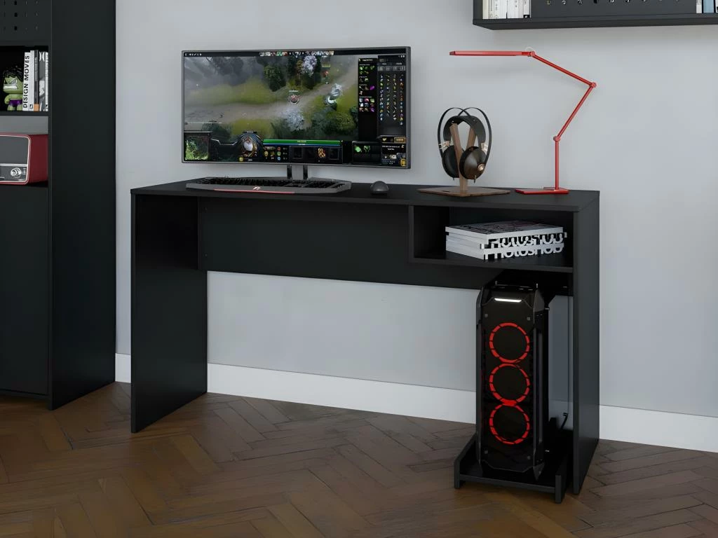 – Plateau de bureau percé pour le passage des câbles fermé par obturateur.