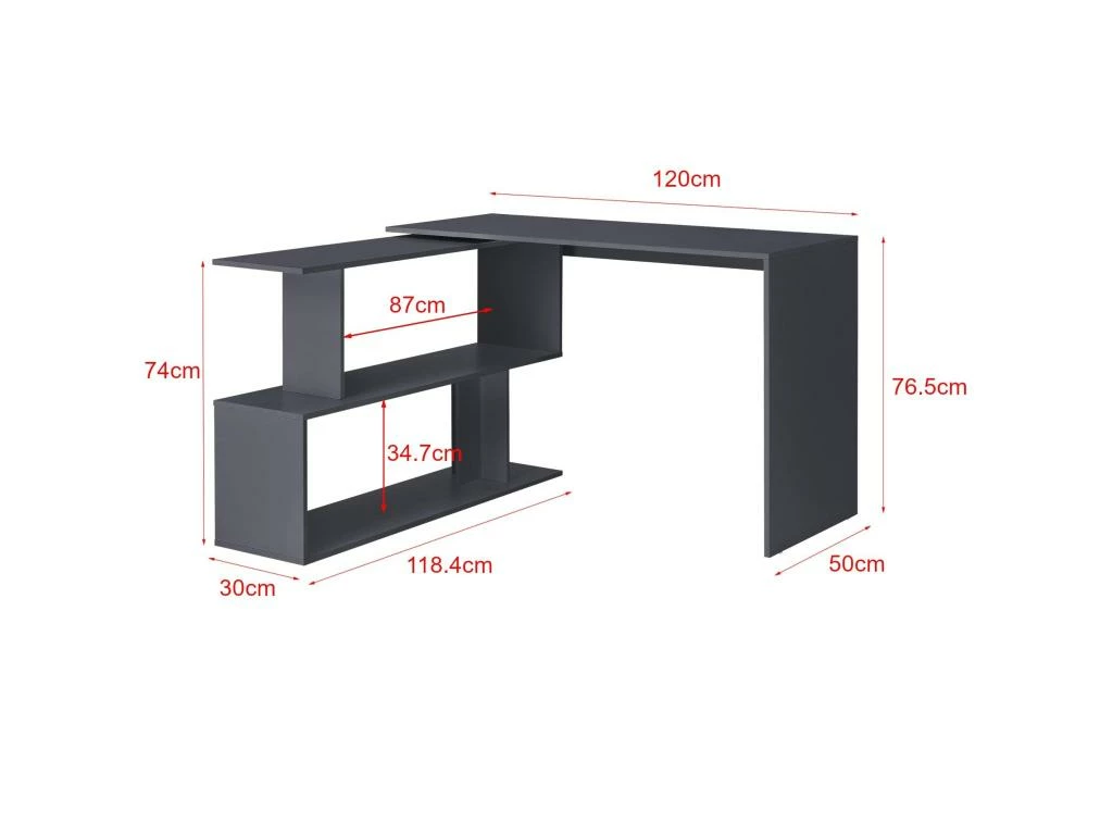 – la partie étagère permet d’étendre le bureau et en faire un meuble de coin