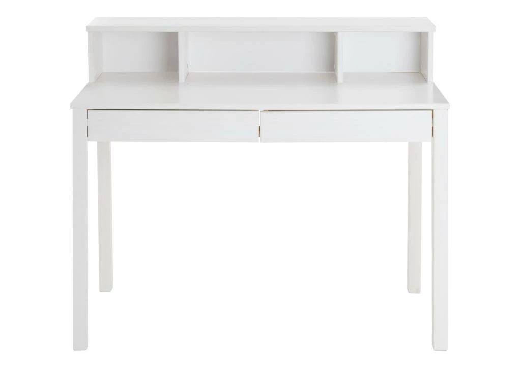– Le bureau est fabriqué en pin massif lasuré blanc.
