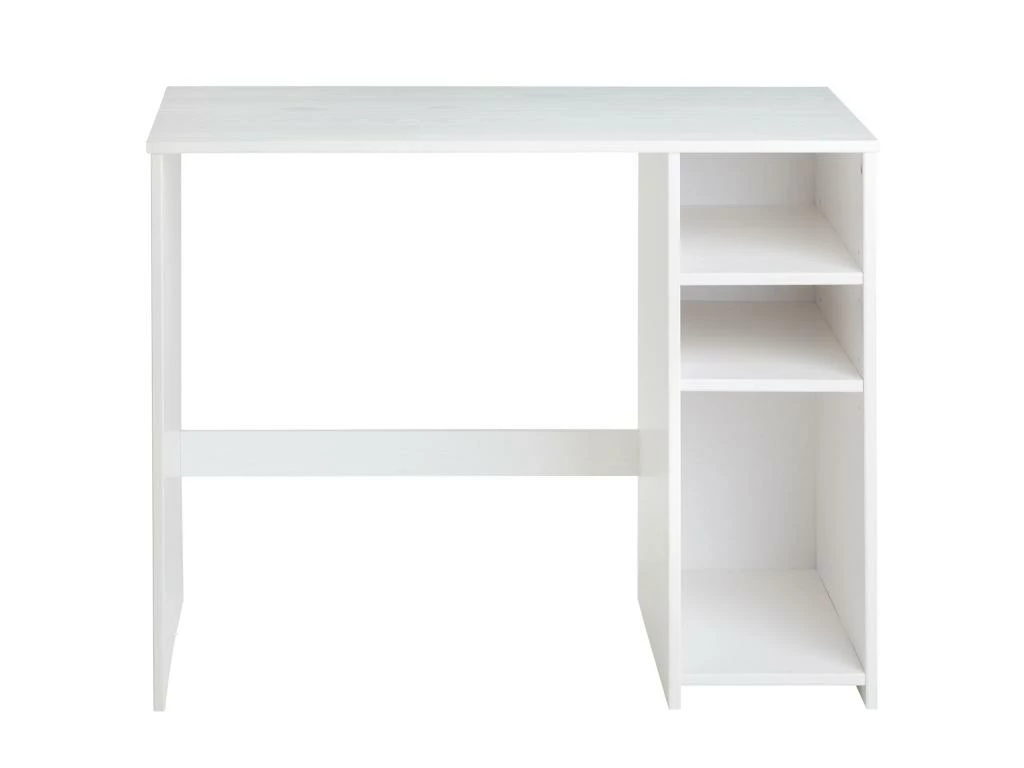 – Le bureau est fabriqué en pin massif lasuré blanc.