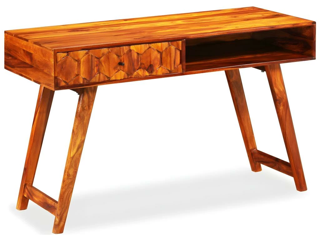 Fabriquée en bois de Sesham massif, le bureau est stable, durable et nécessite peu d’entretien.