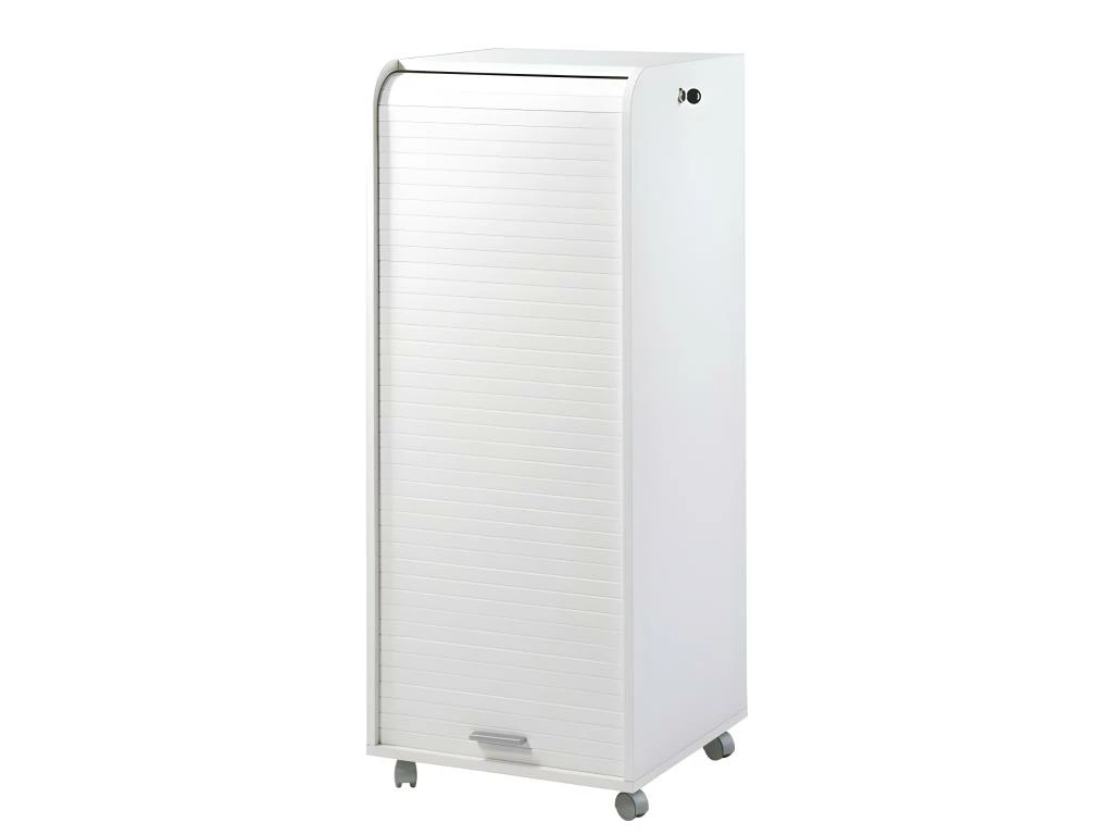 Meuble gain de place, grâce à son rideau qui coulisse de haut en bas.