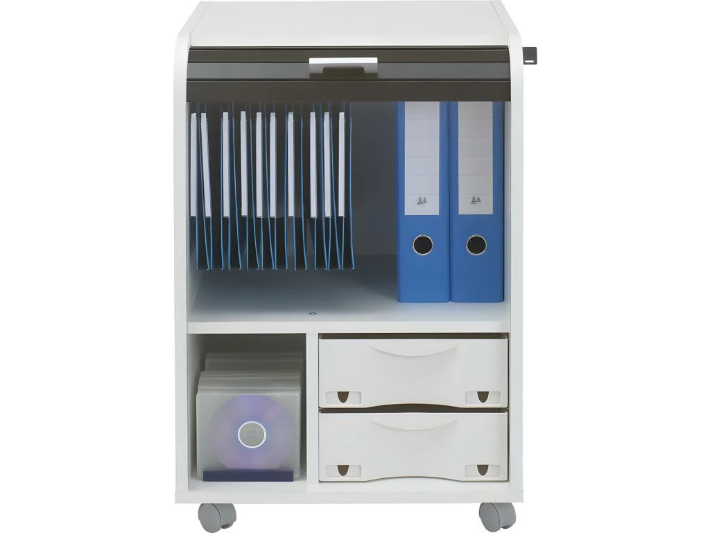 Caisson de Bureau sur Roulettes, Blanc + Rideau Noir ou Chêne.