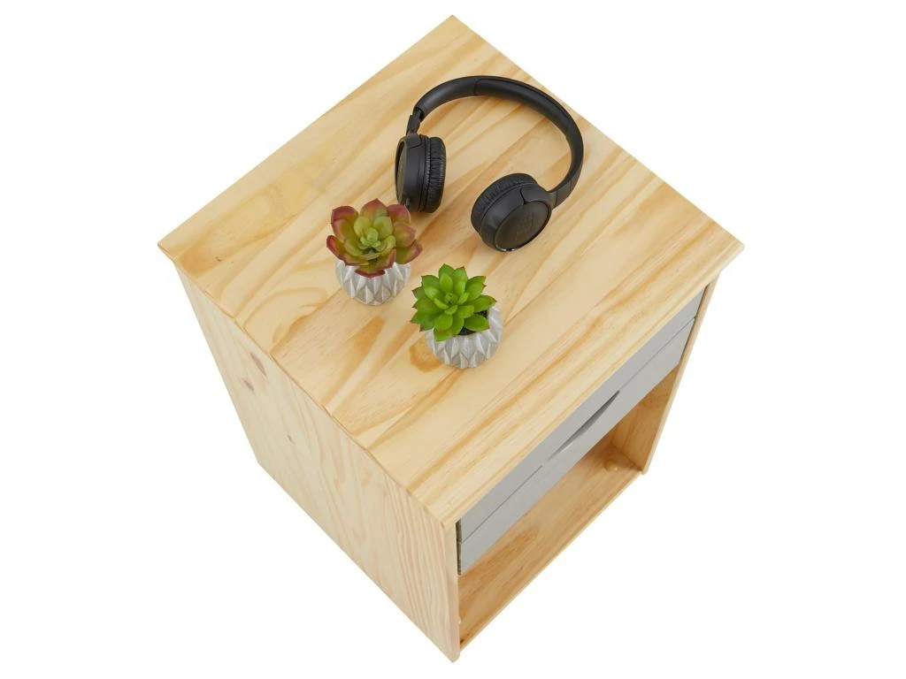 – Le caisson de bureau est fabriqué en pin massif, à la finition naturelle et lasuré gris.