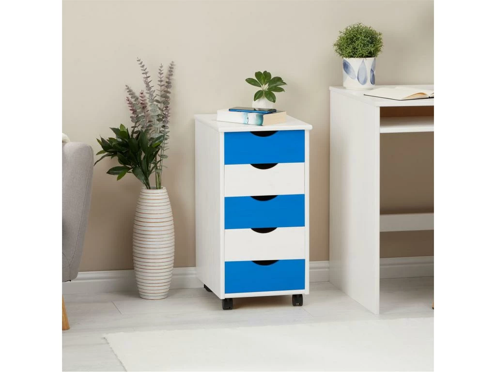 … est l’accessoire indispensable pour organiser votre espace de travail ou bien aménager la chambre de vos enfants. Equipé de 5 tiroirs, ces derniers vous permettront de bénéficier de rangements supplémentaires pour vos affaires de bureau et divers documents, ou bien de ranger les affaires de vos enfants, tels que jouets, livres et affaires scolaires ou même du linge. Monté sur 4 roulettes, vous pourrez ensuite déplacer ce meuble selon vos besoins et le placer facilement sous votre bureau ou dans un coin.