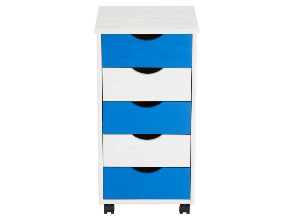 – Le caisson de bureau est fabriqué en pin massif lasuré blanc et bleu.