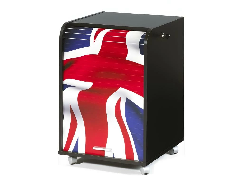 Caisson de Bureau Noir, Rideau Imprimé + 2 Tiroirs, sur Roulettes