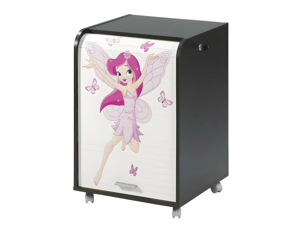 Caisson de Bureau Noir, Rideau Imprimé + 2 Tiroirs, sur Roulettes