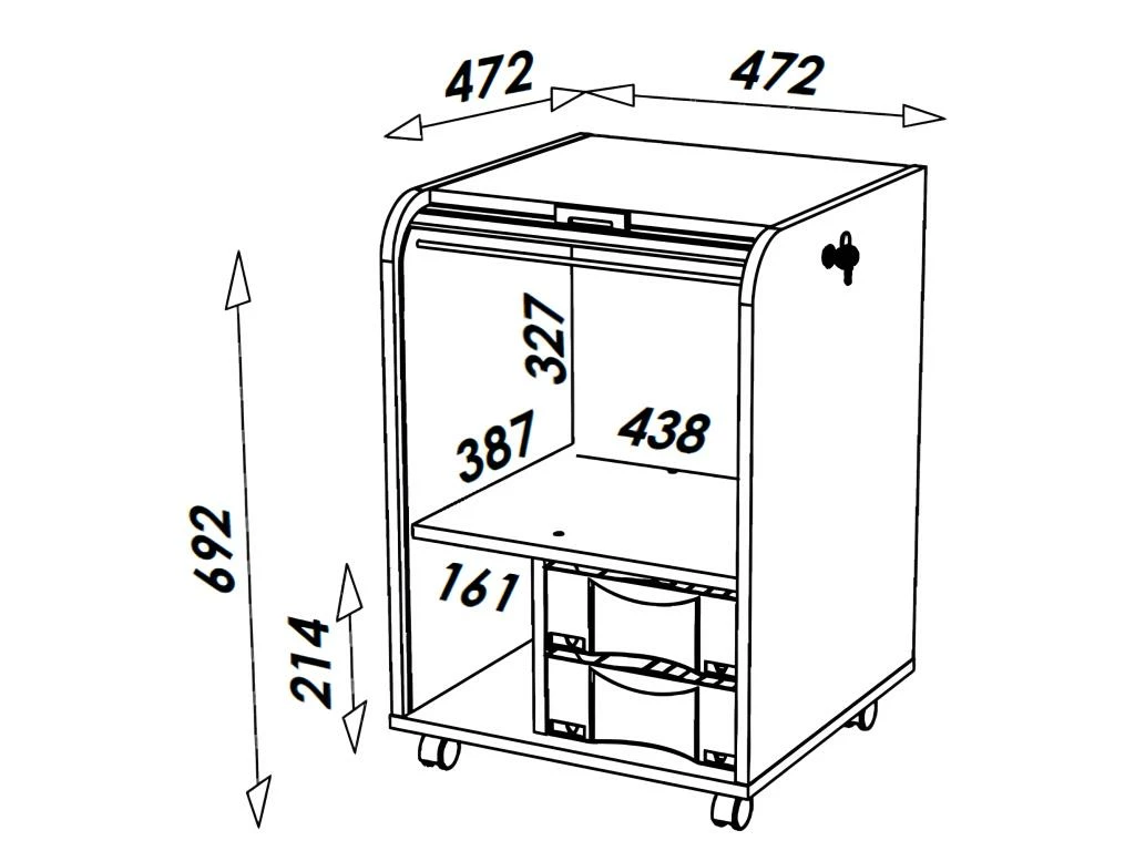 Meuble gain de place, grâce à son rideau qui coulisse de haut en bas.