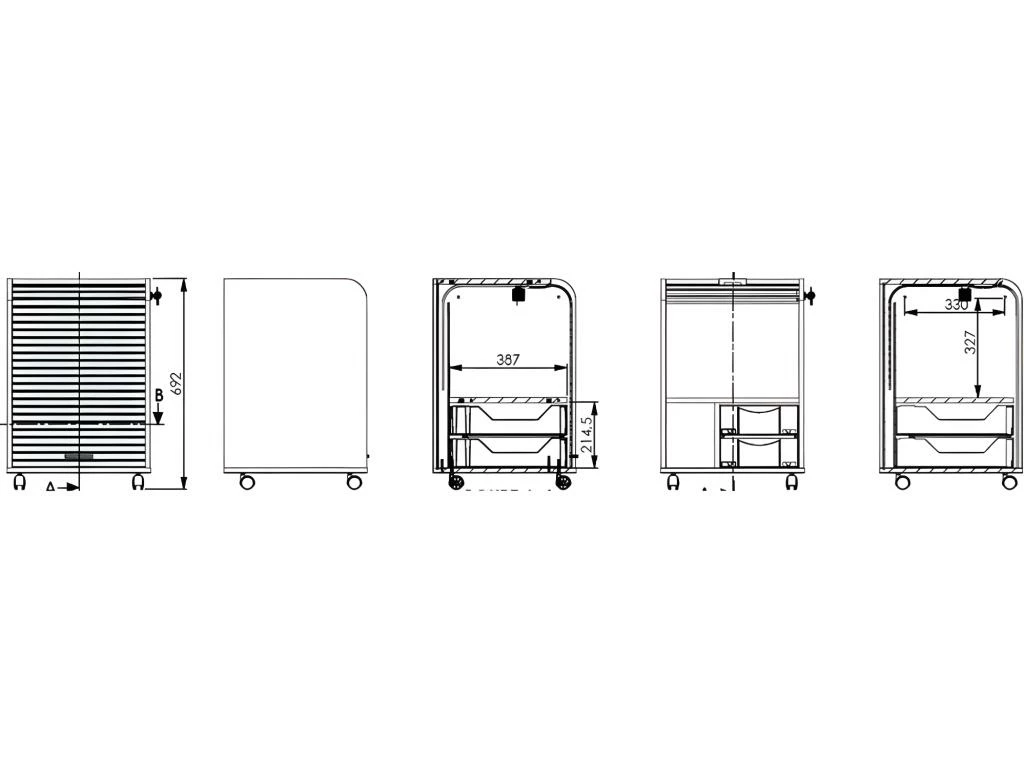 Meuble gain de place, grâce à son rideau qui coulisse de haut en bas.