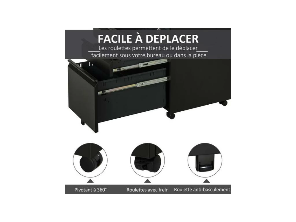 - Charge max. recommandée : 50 kg (au total), 15 kg (par tiroir)