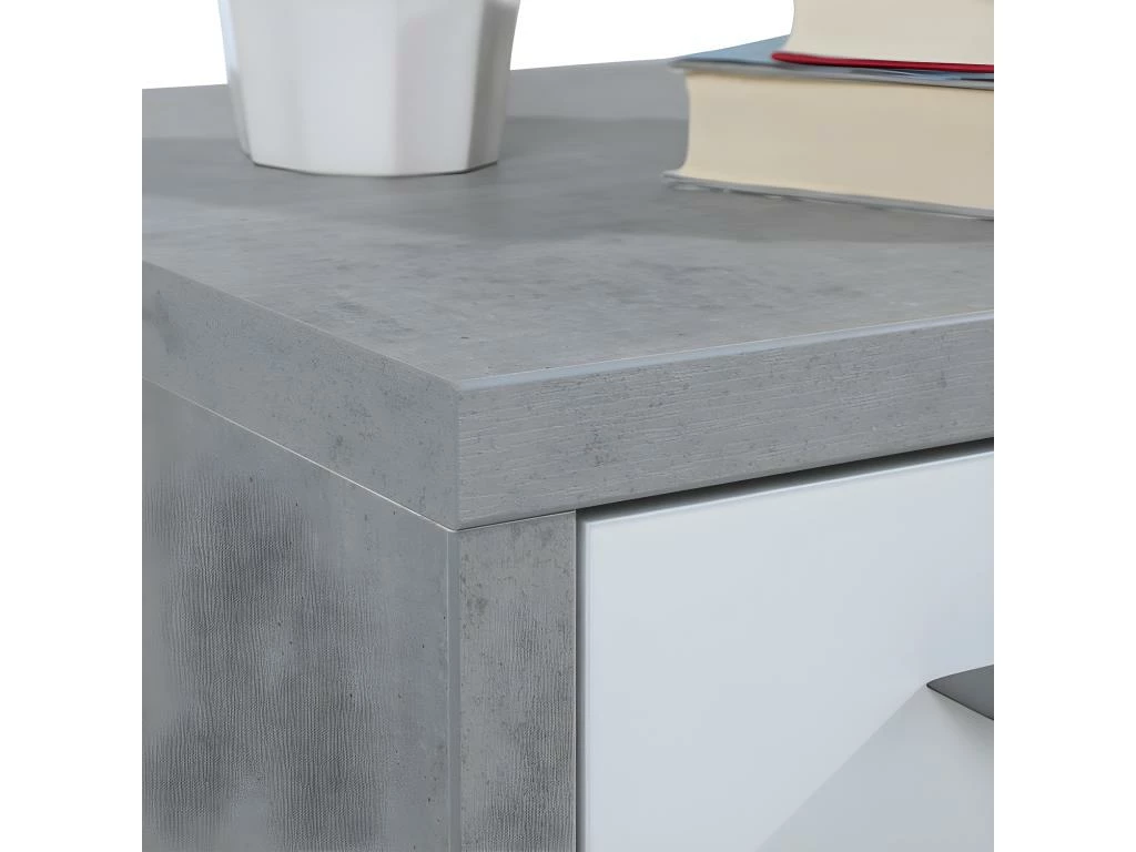 - FINITIONS : Décor effet béton texturé et blanc laqué.