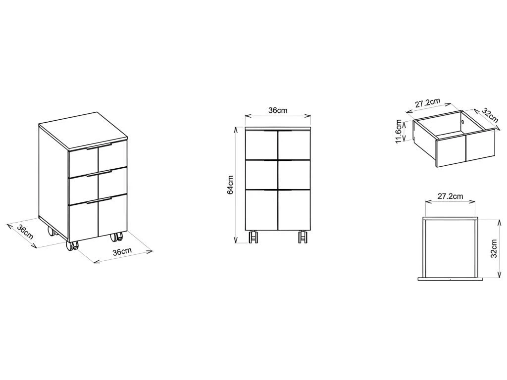 Caisson Roulant 3 Tiroirs Gris Mat CUBIC