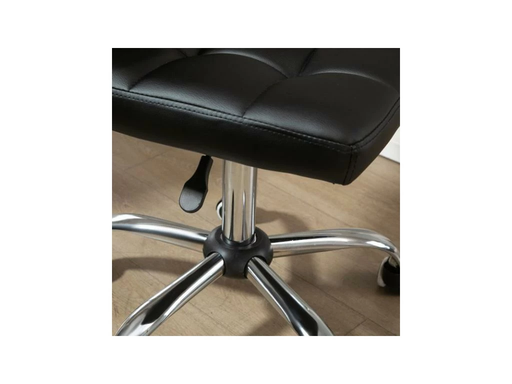 Moderne et stylée, la chaise de bureau Barfly de MYCOCOONING séduit par sa forme originale et son aspect capitonné. Pour une salle de réunion, un open space, une cuisine ou une cafeteria, ce fauteuil élégant séduit et se montre partout. Sa conception ergonomique et son rembourrage en mousse de haute densité permettent d’y rester assis pendant des heures avec toujours le même confort. Le revêtement synthétique noir est très facile à entretenir. L’assise est réglable en hauteur pour s’adapter à votre taille et les roulettes pivotent à 360° pour faciliter son déplacement dans la pièce.