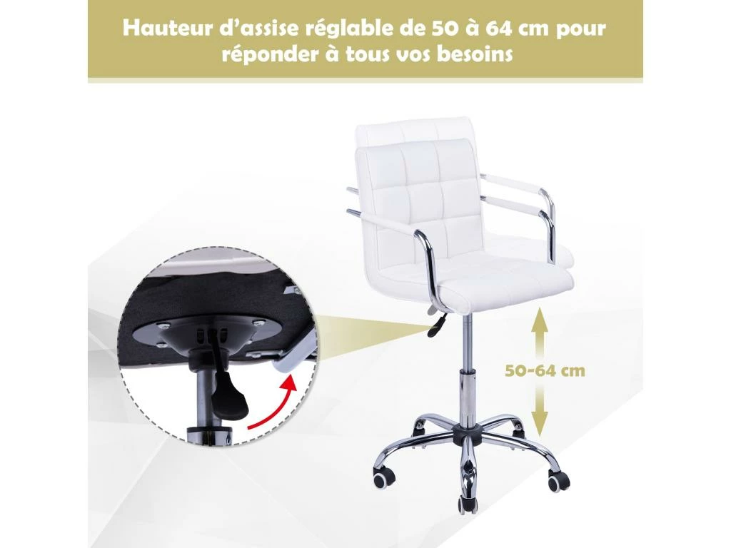 -Hauteur d’assise réglable de 50 à 65 cm pour réponder à tous vos besoins