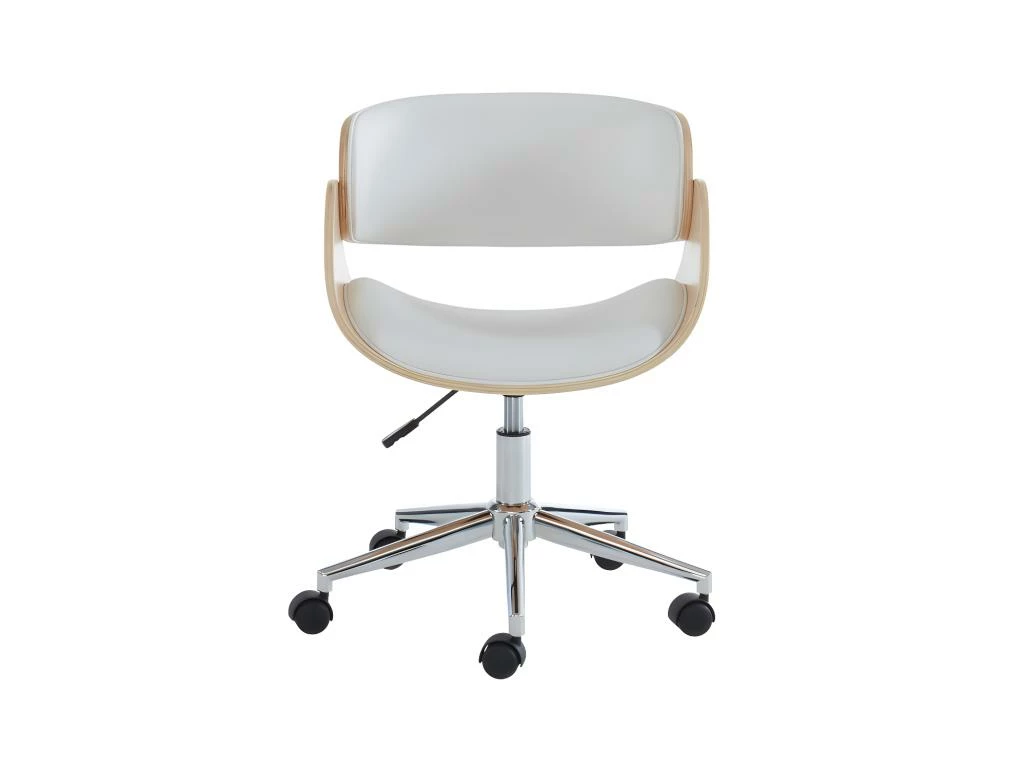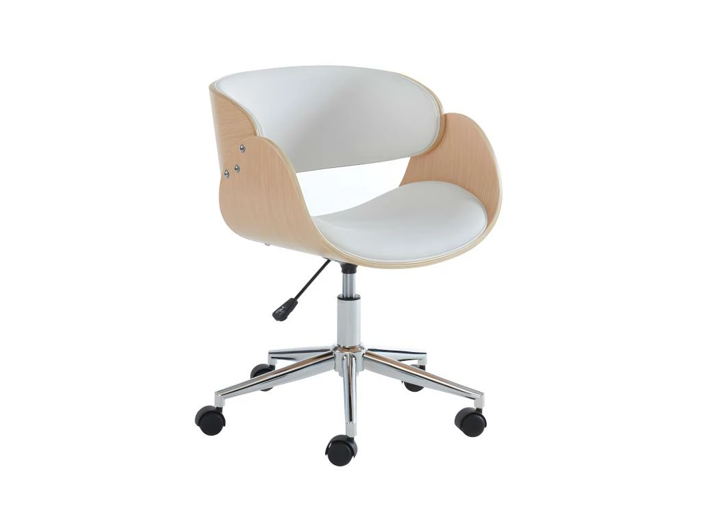 La chaise de bureau JELSA est un parfait mélange de l’élégance d’un dossier plaqué chêne et d’un revêtement en simili cuir blanc, pour un look résolument rétro !