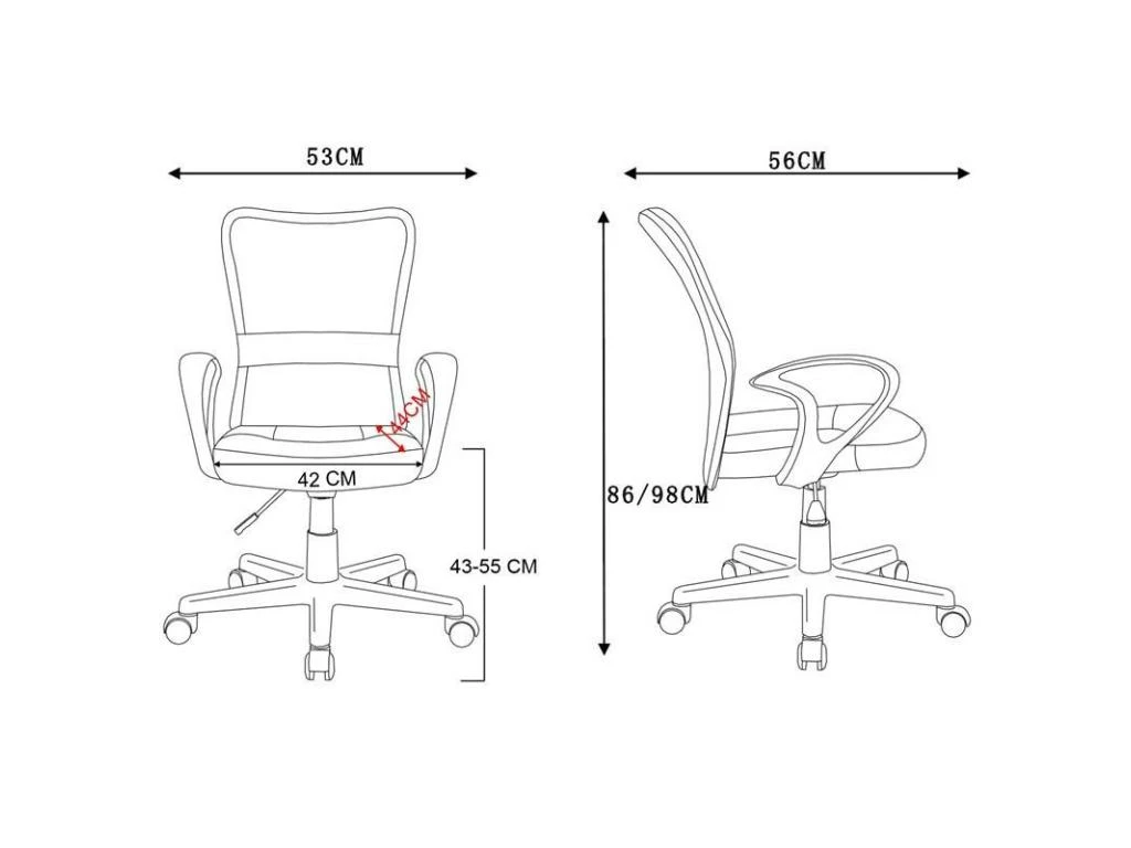 - Hauteur d’assise : 43-55 cm