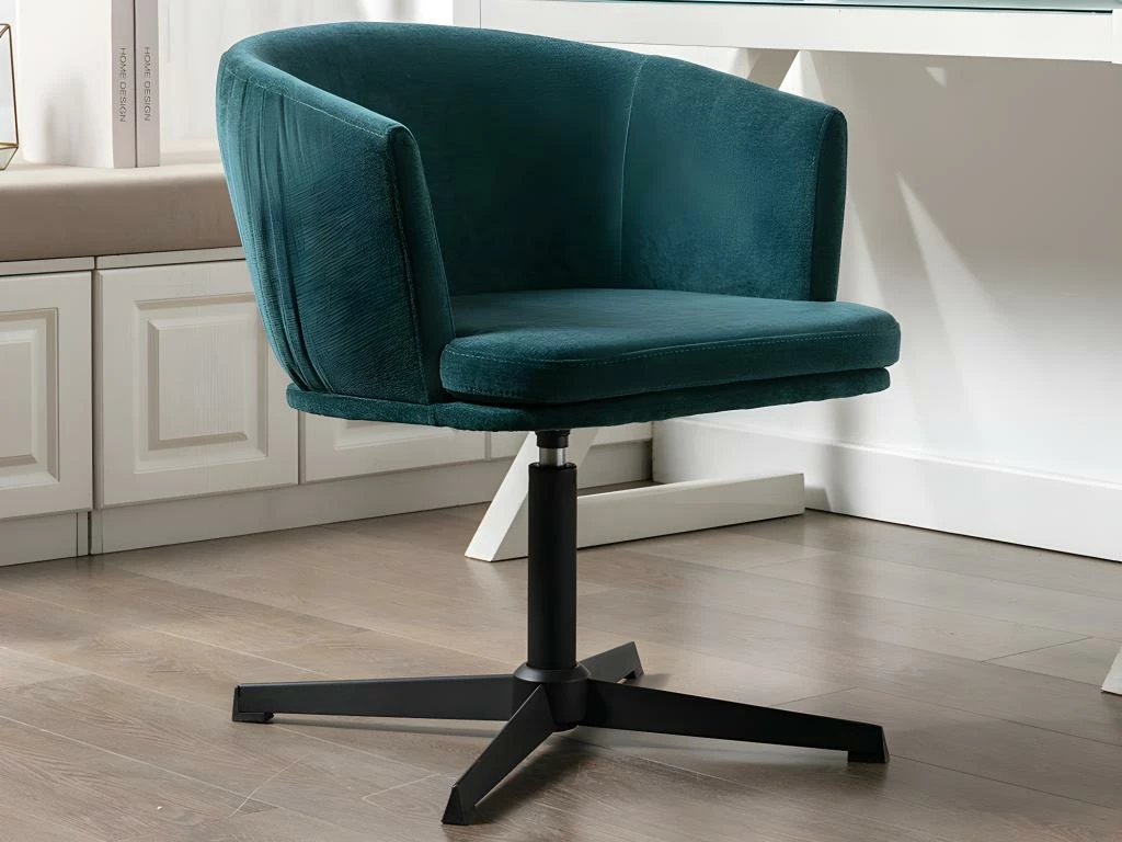 Découvrez la chaise de bureau en tissu FAVIA. Confortable et efficace, elle conviendra parfaitement pour les longues journées de travail. Disponible en bleu canard ou en taupe, cette chaise trouvera parfaitement sa place dans votre pièce. Son design lui confère quant à lui un charme vintage qui saura vous séduire !