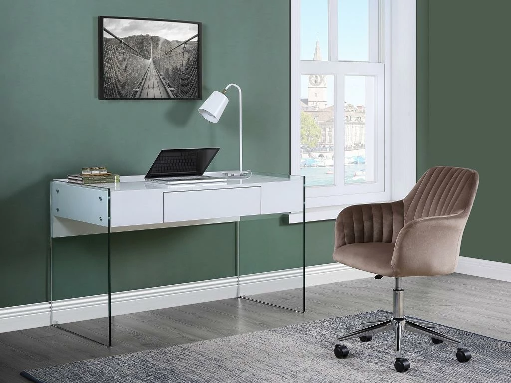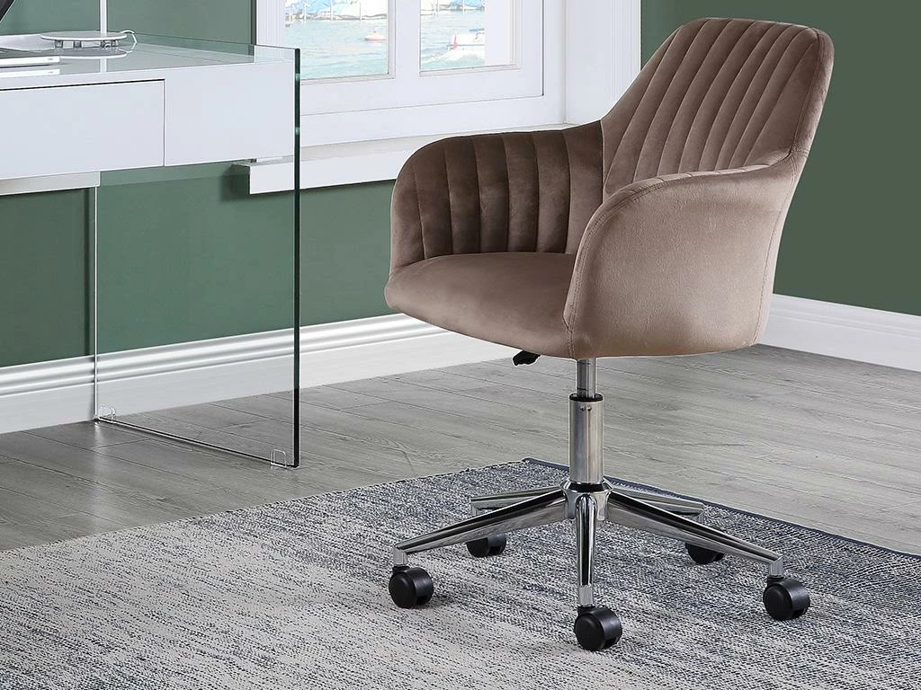 Confortable et fonctionnel le fauteuil de bureau à hauteur réglable ELEANA transformera vos journées de travail en moments agréables. Avec son revêtement en velours et son look rétro, il s’intégrera facilement dans votre intérieur.