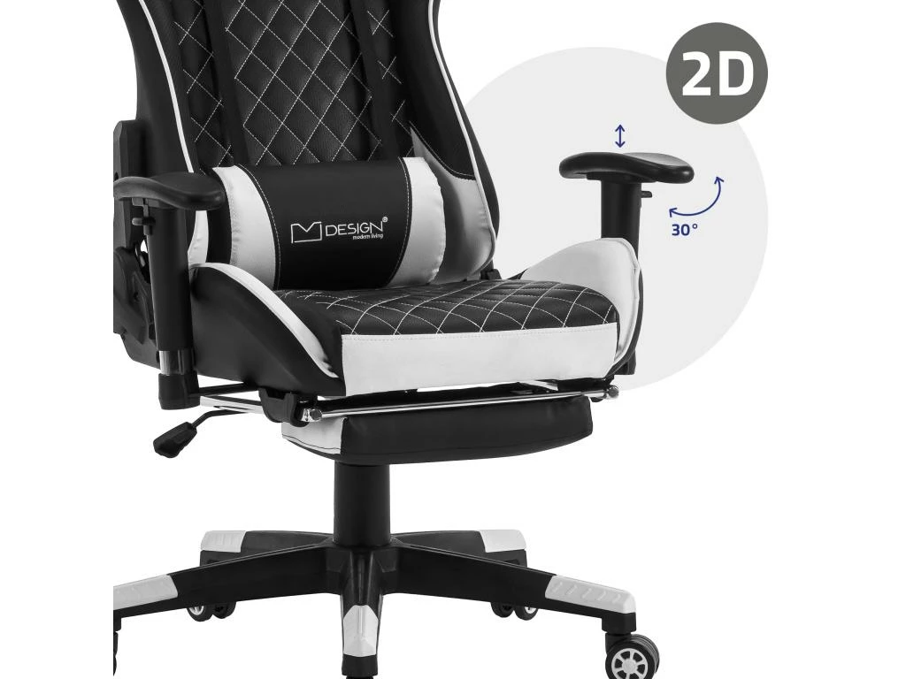 Design ergonomique pour un confort maximal : notre gamingchair est recouvert d’un luxueux similicuir qui n’est pas seulement élégant, mais aussi agréable au toucher. Les coussins lombaires et cervicaux assurent un soutien optimal et aident à prévenir les tensions pendant les longues sessions de jeu.