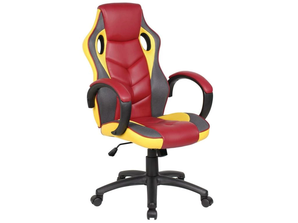 Chaise De Jeu Darlanc, Fauteuil De Jeu Pour Adultes, Chaise De Bureau, 66x61h104/114 Cm, Rouge Et Jaune