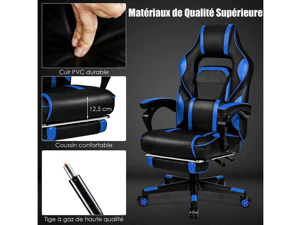 - 【Construction robuste et durable: 】Fait d’un cadre de haute qualité, ce fauteuil de course est robuste et durable pour supporter jusqu’à 150 kg. La housse en PVC est pratique pour l’entretien. L’éponge haute densité remplie à l’intérieur vous offre l’expérience la plus confortable.